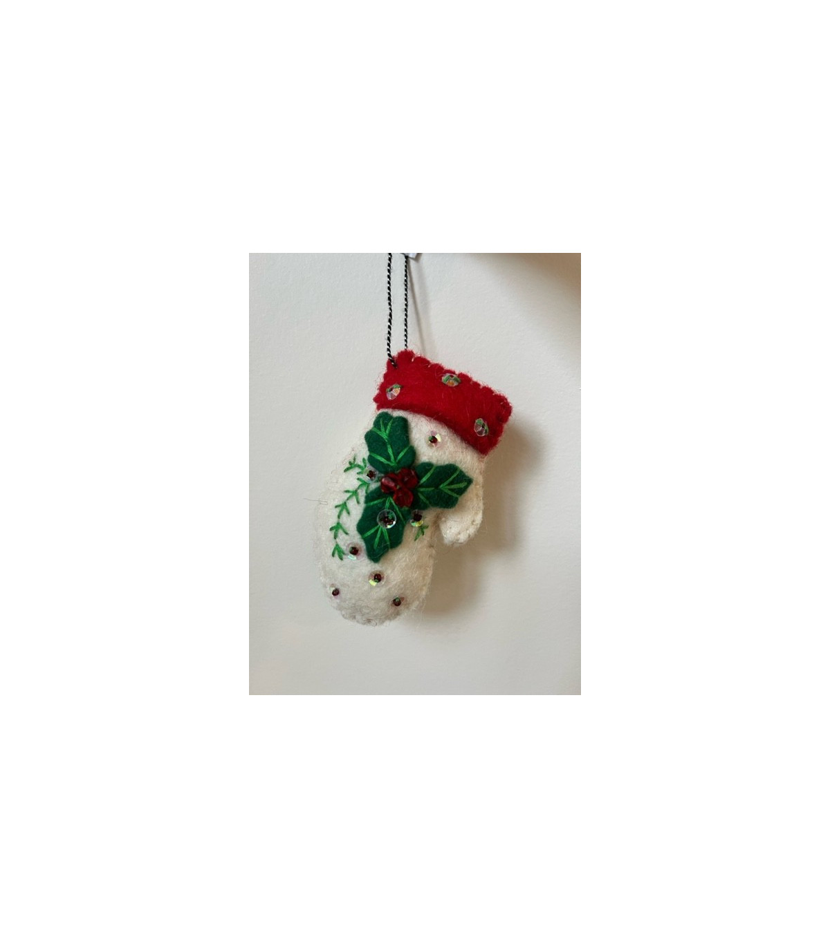 Handmade felt mitten decoration adds cosy charm to trees, wreaths, presents and mantelpieces.