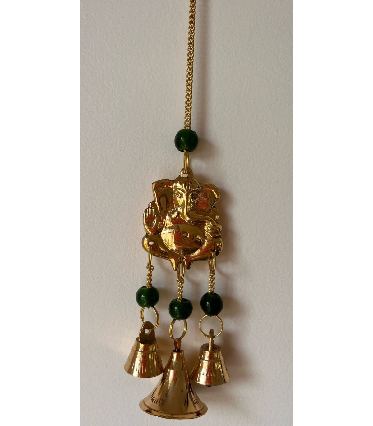 Handcrafted brass bell featuring Ganesh — fills your home with calming, melodious charm and sacred grace.