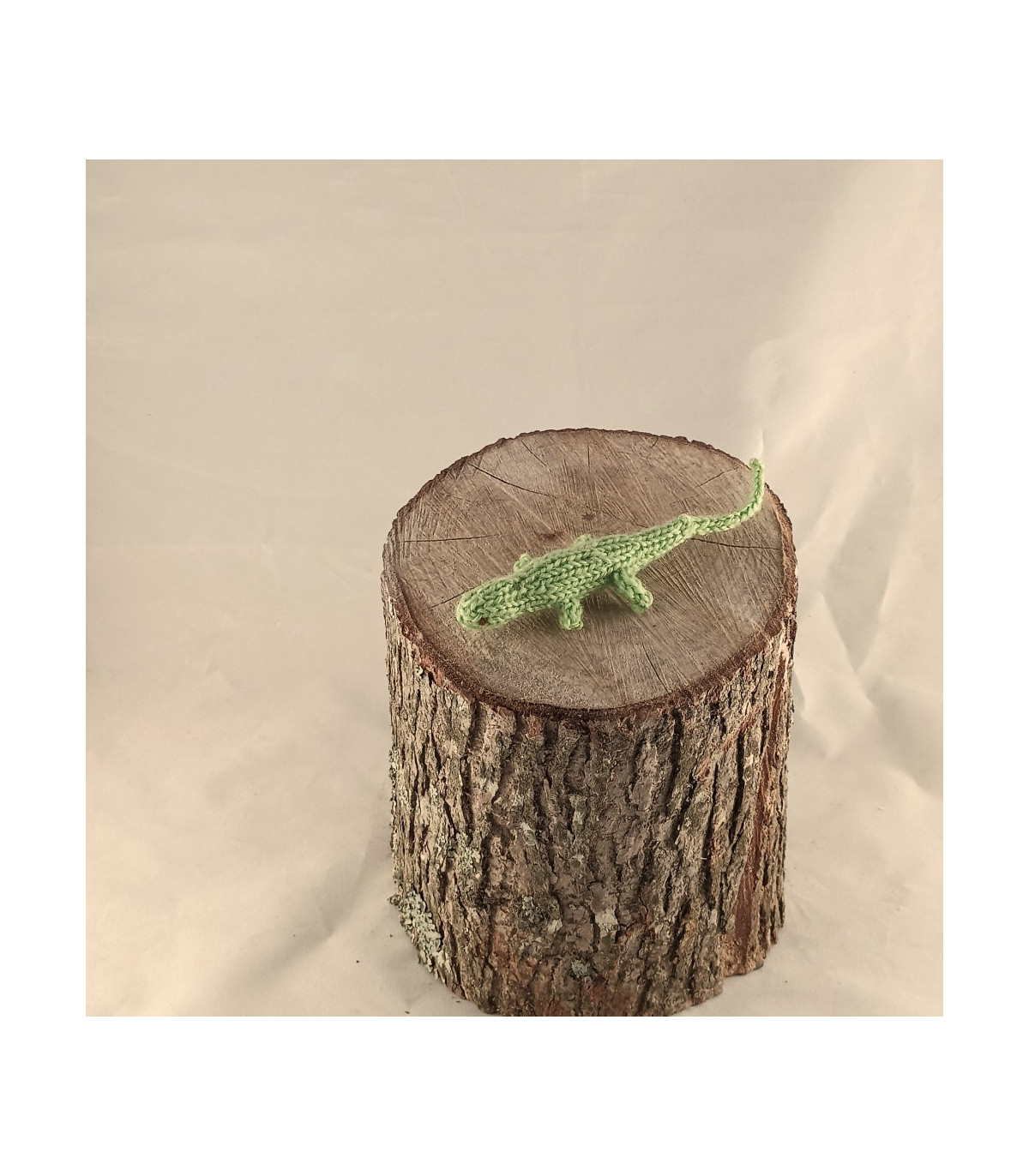 Hand-made knitted or crocheted gecko with vibrant colours, soft texture and adorable charm — perfect for gifting or home décor.
