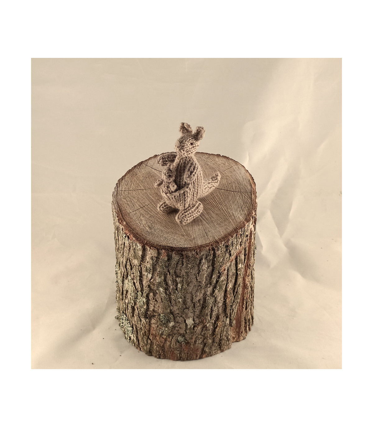 Hand-knitted or crocheted kangaroo with joey — soft, cuddly companion, ideal for nurseries and thoughtful gifts.