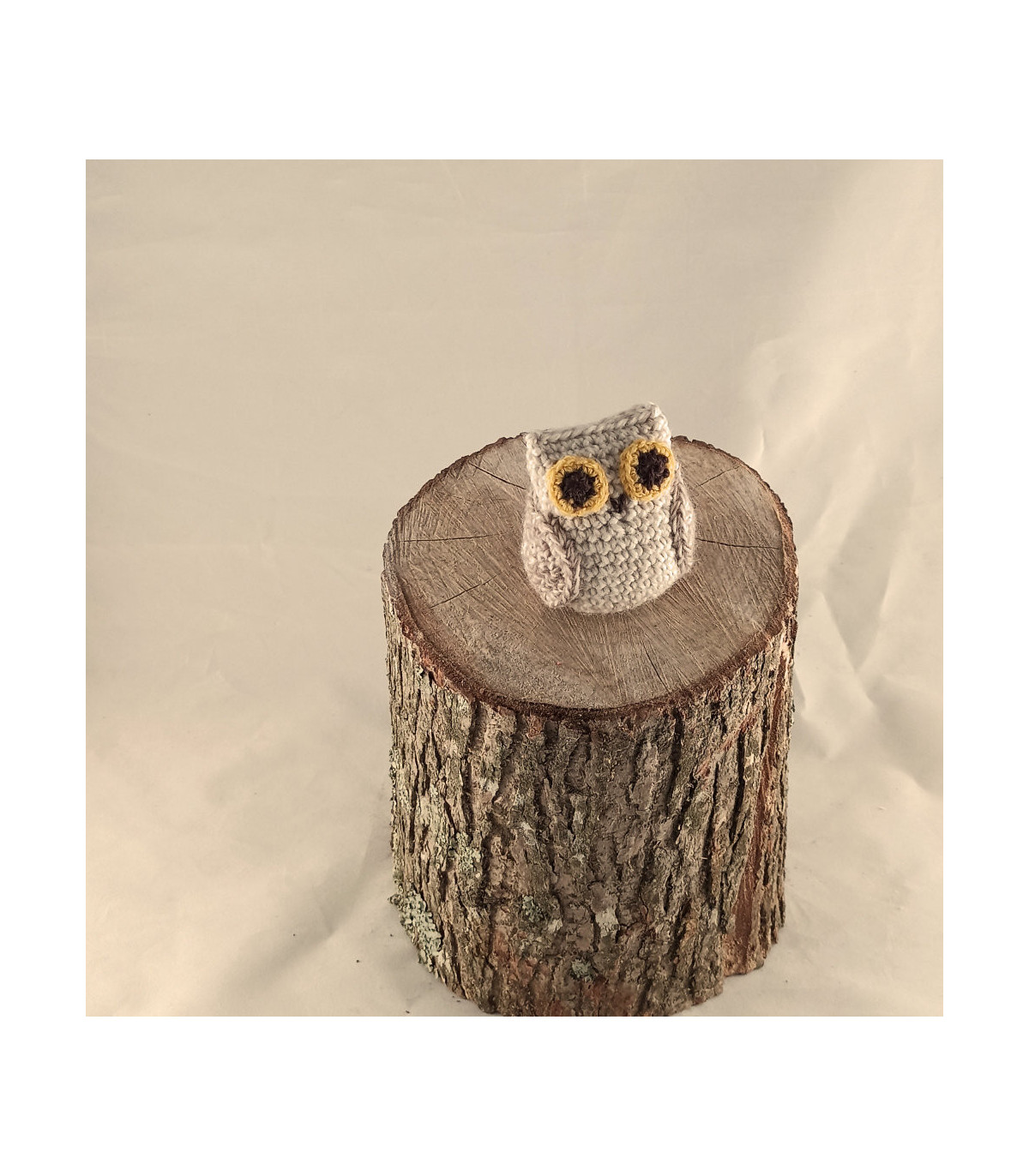 Handmade knitted and crocheted owl — soft, cosy keepsake perfect for nurseries and thoughtful gifts.