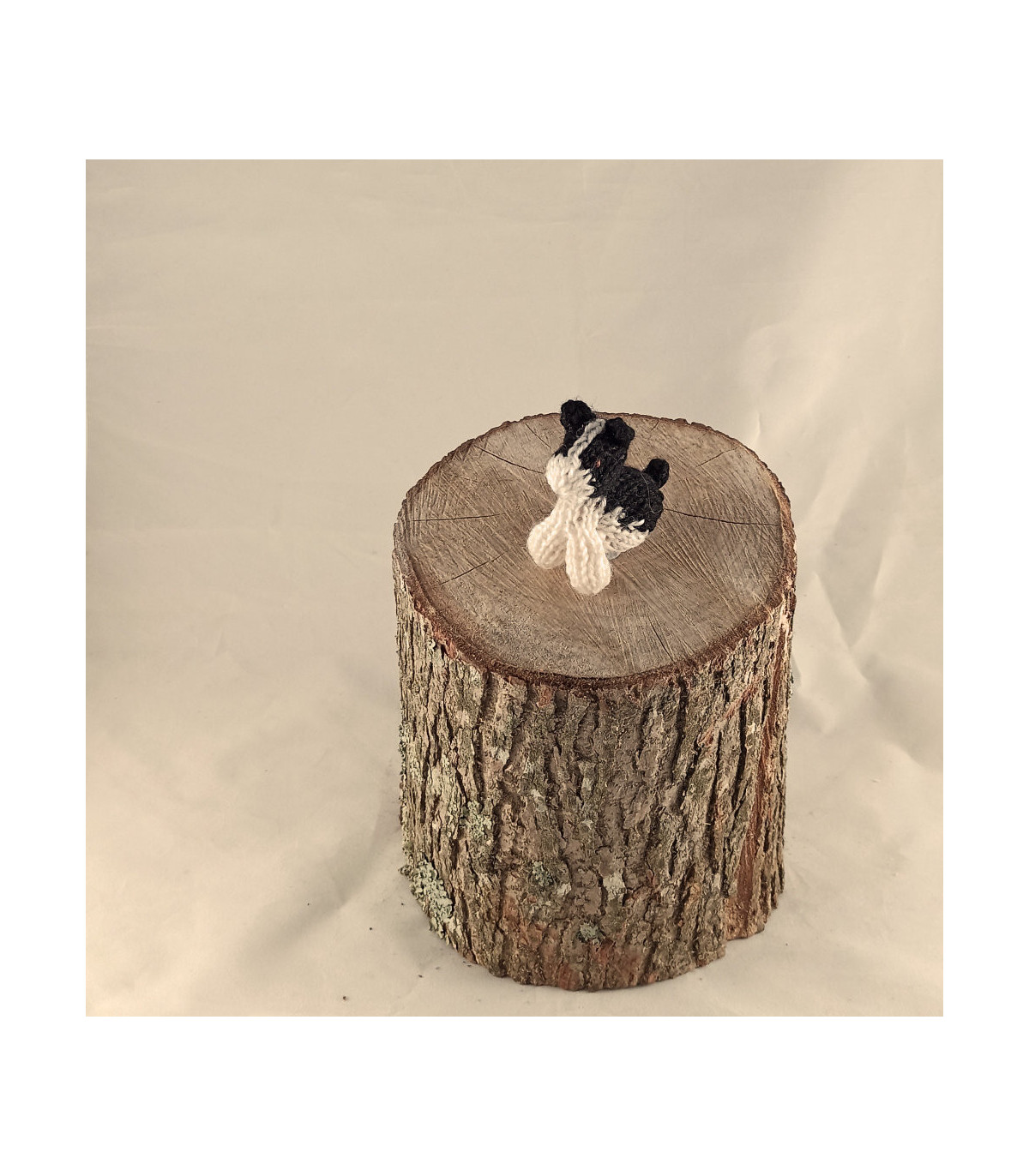 Soft, handmade knitted or crocheted puppy — a cuddly companion for all ages.