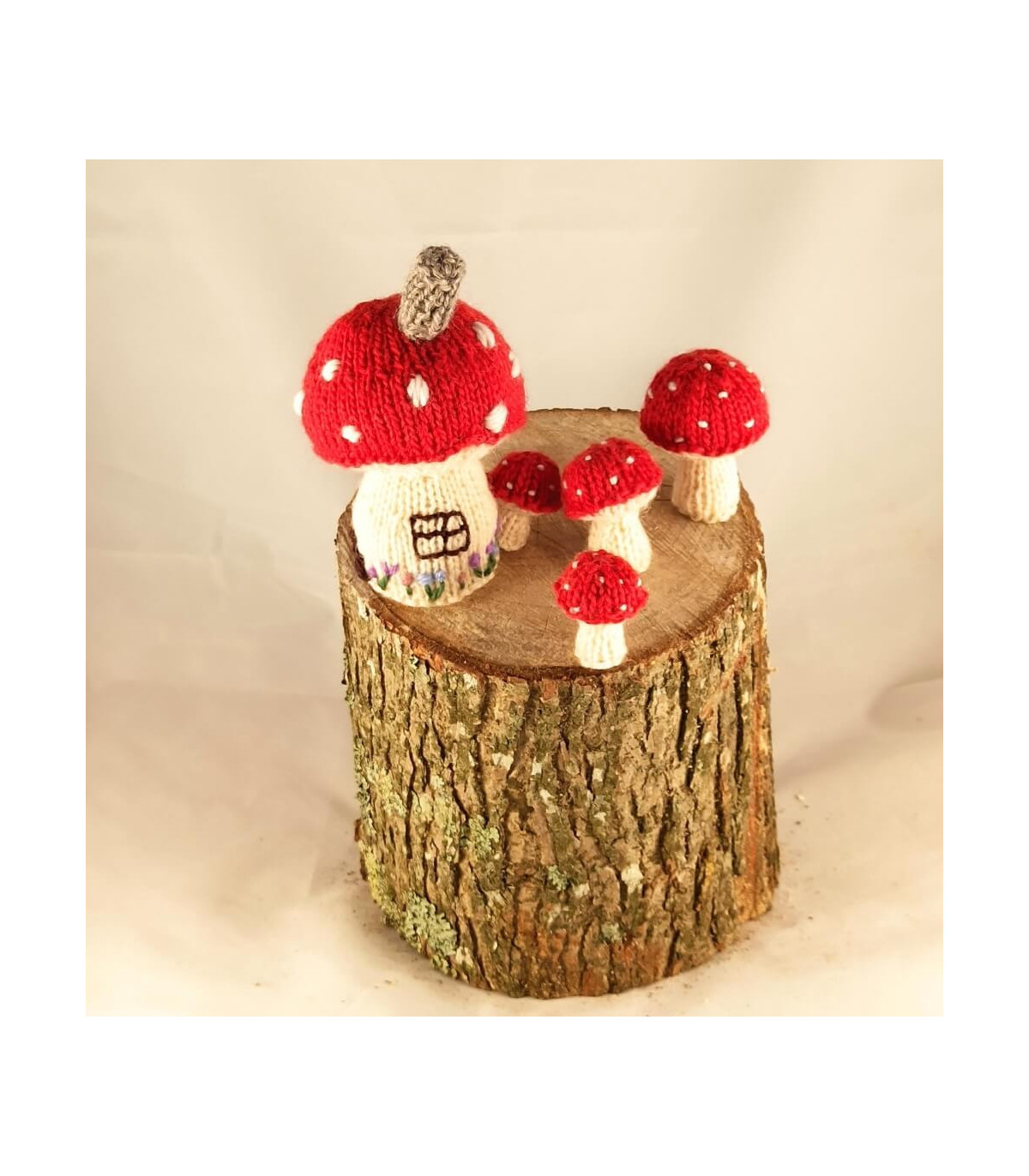 Handmade knitted or crocheted toadstool: cosy, charming décor or toy, perfect for nurseries and quirky home displays.