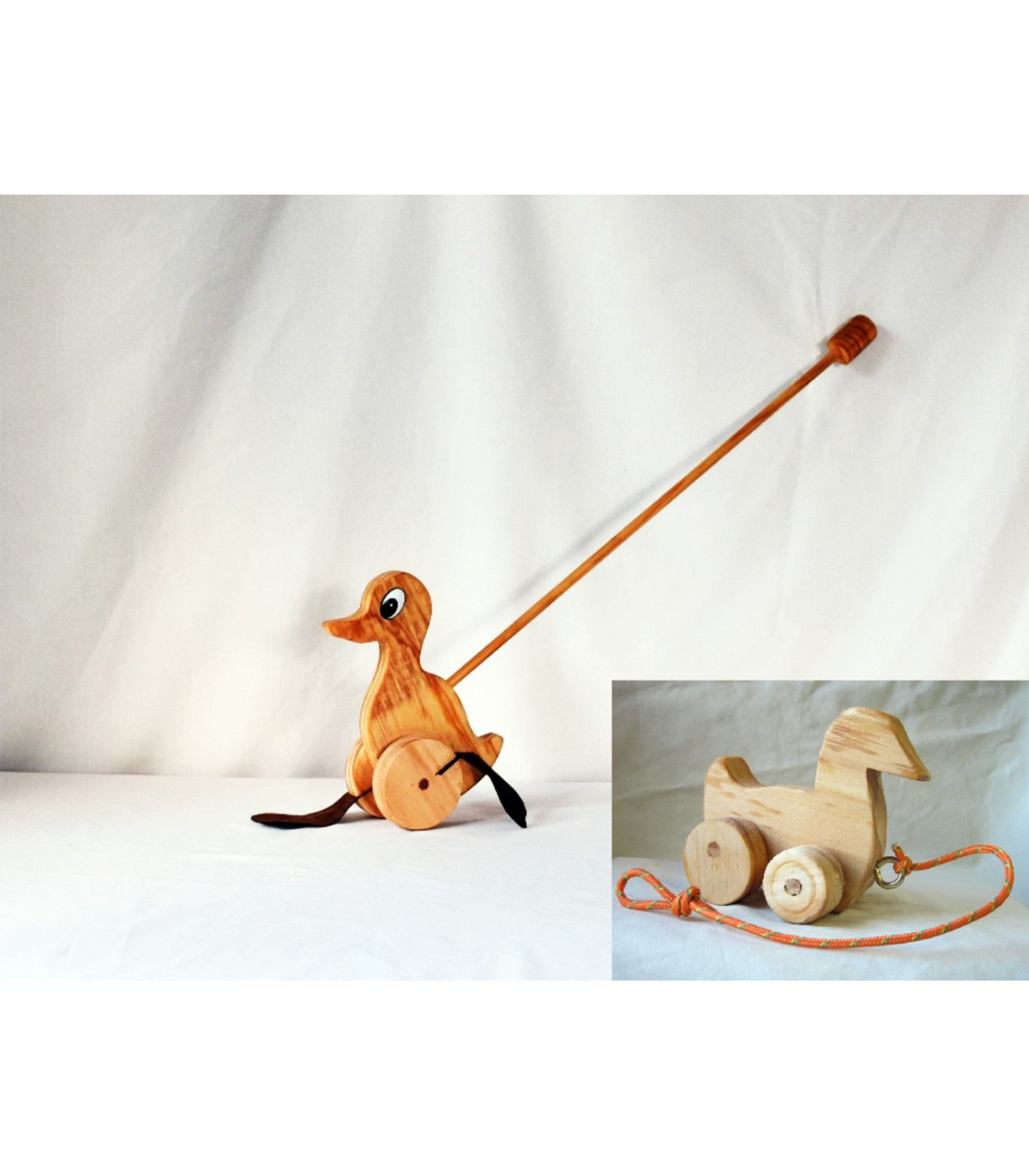 Cute wooden push duck with smooth wheels for hours of toddler fun.